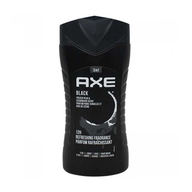 Axe Black 12h Long Lasting Fragrance 3-In-1 Body Wash 400ml is an all-encompassing hygiene product designed to meet the grooming needs of all men. The 3-in-1 formula serves as a body wash, shampoo, and face wash, adding convenience to the shower routine. It's crafted to effectively cleanse the skin and hair, eliminate bad odors, and leave behind a refreshing scent that lasts throughout the day. This body wash features a plant-based formula infused with an irresistible fragrance that promises to keep you feeling fresh for up to 12 hours. Beyond its cleansing properties, the formula includes 100% plant-based moisturizers that work to leave the skin feeling irresistibly soft.