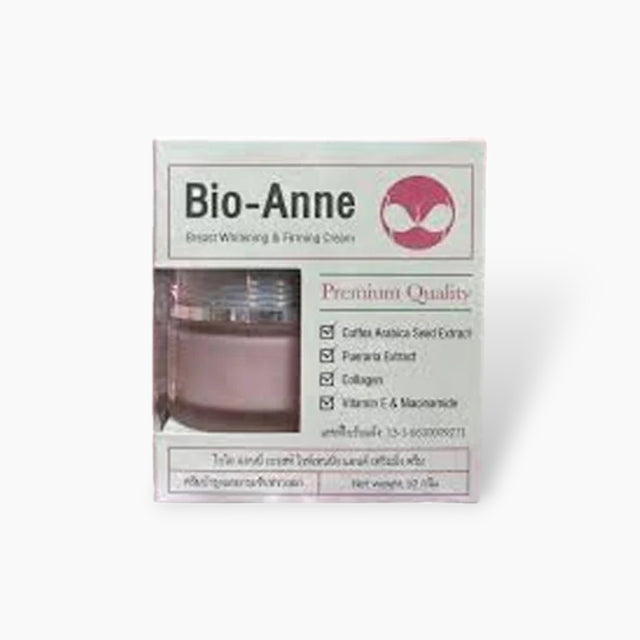 Bio-Anne Breast Whitening & Firming Cream 50G Transform the appearance of your breasts with Bio-Anne Breast Whitening & Firming Cream 50G. This cream is specially formulated to whiten and firm the delicate skin on your breasts, giving you a more youthful and lifted appearance. With regular use, you can expect to see visible results, including increased firmness, improved skin tone, and reduced discoloration. Say goodbye to sagging and dull-looking breasts and hello to a more confident and radiant you. Trust in the expertise of Bio-Anne to provide you with a safe and effective solution for beautiful and youthful-looking breasts.