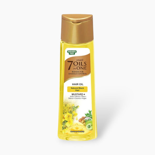 Enriched with goodness of 7 unique natural oils including Mustard, Amla & Henna promotes natural black hair, helps control dandruff and soothes scalp to keep it healthy.