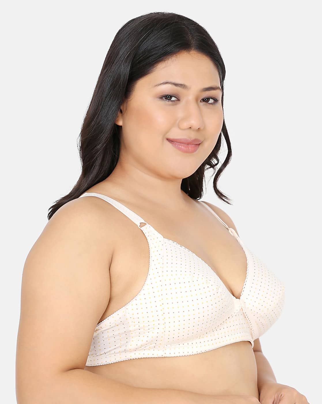 Feeding Bra is a Front Opening Wireless bra for women. Made of natural fabrics i.e. Cotton as its more absorbent, soft and comfortable, and spandex to give it the flexibility required. Front buttons on the waist band for easy access, wider waist band for more support with wider elastic bra extension, flexible shoulder strap. Front paneling for better support. Dotted print and cotton laced details. Soft non-wired shape, with our new and improved fit. This nursing bra, which is made of soft and stretchy cotton fabric, provides maximum comfort all day long. For a no-poke experience, it is not wired or cushioned. For feeding purposes, this bra has a full-cup opening on the front. Its shoulder straps can be adjusted to fit you perfectly.