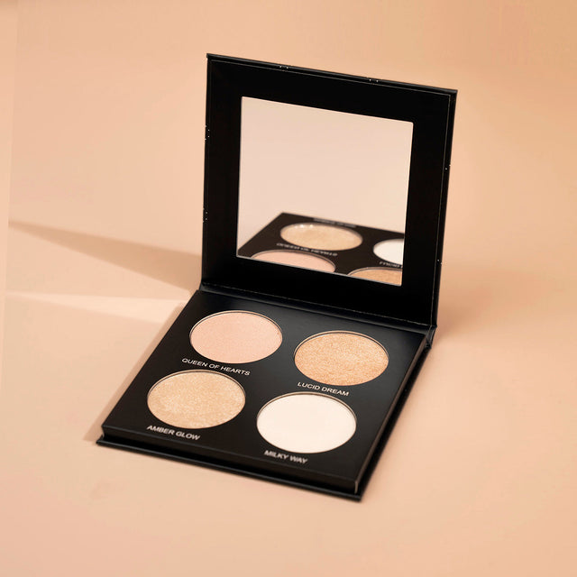Introducing the Hall Of Glow Highlighter Palette, a stunning collection of finely milled, high-pigment highlighters that will give you an irresistible, radiant glow. This versatile palette features four shades that cater to a range of skin tones, from fair to deep. Each shade has been carefully selected and formulated to give you the perfect highlight, no matter the occasion.
