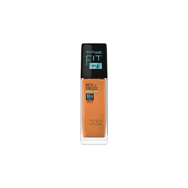 Get a flawless, matte finish with Maybelline Fit Me Foundation in 332 Golden Caramel. With SPF22 and a lightweight, pore-minimizing formula, it provides sun protection and a smooth, even complexion. Perfect for all-day wear and suitable for all skin types, this liquid foundation is a must-have for your makeup routine.
