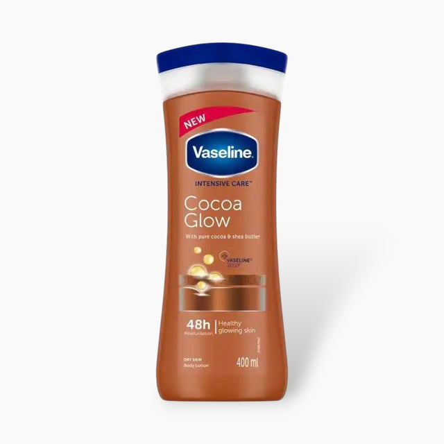 Contains microdroplets of Vaseline Jelly to seal in moisture and 100 percent pure cocoa and shea butter, known to expose skin's natural radiance. Rich moisturization soothes dry skin and gives it a radiant glow. The finest daily body lotion for dry, dull, and rough skin.