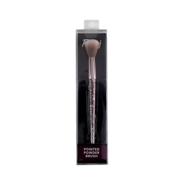 A pointed powder bron is d makeup has a defined tapered shape, with a pointed tip that allows for targeted application of powder products. The bristles of this brush are soft and densely packed, ensuring a smooth and even application.