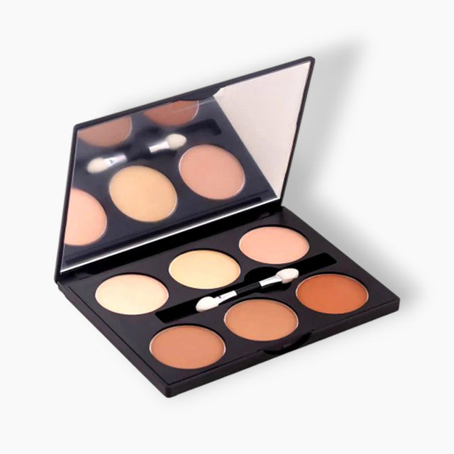 An easy-to-use, six-well contour pigmented powder effortlessly melts on the skin to define facial dimensions and a sculpted look. Meet all in one contour kit comes with universal shades that allow you to have a chiseled look. They blend like a dream on the skin giving you an illuminating effect & natural-looking contoured face and will help you enhance your features and create the illusion of a slimmer face, more prominent cheekbones, and a thinner nose. It works well on all skin tones!