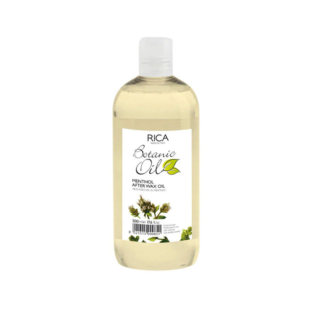 Rica Menthol After Wax Oil soothes and nourishes skin after waxing treatments. This 500ml formula combines cooling menthol with conditioning oils to reduce irritation, redness, and ingrown hairs. The refreshing menthol provides immediate relief while moisturizing ingredients restore skin's natural balance. Ideal for all skin types, it leaves skin smooth, calm, and hydrated. Perfect for professional salons and home use.