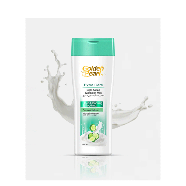 Golden Pearl Triple Action Cleansing Milk is enriched with Cucumber Extract, Vitamin E and Aloe Vera Gel. It helps remove makeup and dirt. It penetrates deep into the skin to remove traces of excess oil. The formula removes impurities while leaving the skin feeling clean and soft. Use daily and enjoy the refreshing scent of fresh cucumber and milk with Golden Pearl Triple Action Cleansing Milk.
